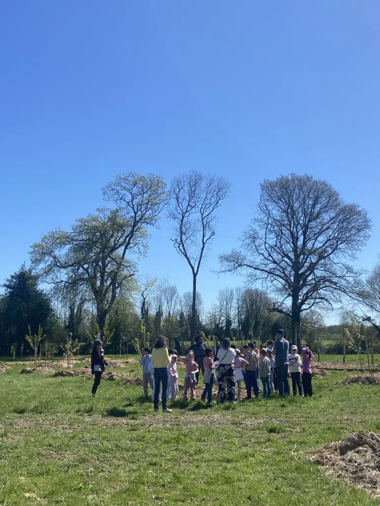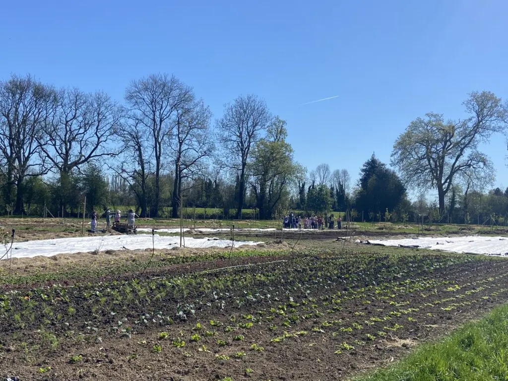 Les élèves ont débuté la journée par une visite guidée de la Ferme du Thenney. Pierre Eichenlaub leur a présenté les cultures de saison, les pratiques agricoles respectueuses des sols et de la biodiversité, ainsi que les projets de développement de la ferme.